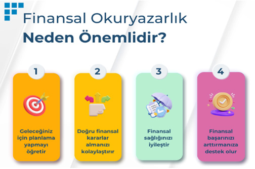 Finansal okuryazarlık; Bütçe yönetimi, gelir-gitme, borçlanma bilinci, yatırım seçeneklerinin değerlendirilmesi, risk-getiri analizi ve uzun vadeli finansal hedefleme belirleme gibi alanlarda bilgi ve ortaya konulmasını ifade etmektedir. Finansal okuryazarlık düzeyi yüksek bireyler, ekonomik para birimlerine karşı daha dayanıklı olmakta, kaynaklar daha verimli kullanımda ve finansal riskleri en aza indirerek daha sağlıklı kararlar alabilmektedir.
